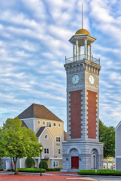 The Vietnam Veterans Memorial Clock Tower at Marina Bay was dedicated in 1987. The Clock Tower is an 85 foot high structure of brick and granite with a gold leaf cupola and a working clock. The base of the tower is 16 feet by 16 feet and is dedicated to the memory of Quincy men who died from wounds suffered during the war in Vietnam. Their names are inscribed in granite at the base of the tower.